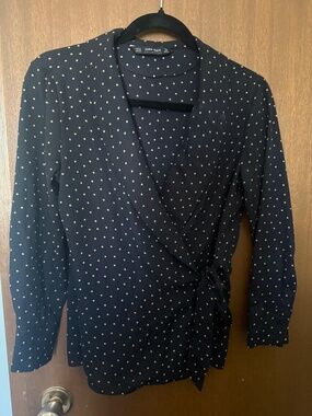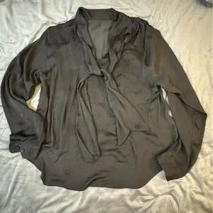 Zara Woman Black Blouse with Tie Detail #1089