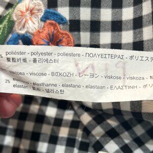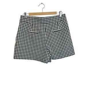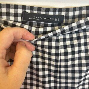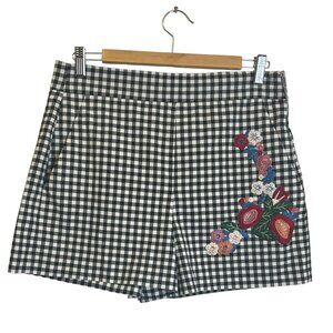 Zara Woman Black White Gingham Floral Shorts Hot Pants Embroidery Sz L High Rise