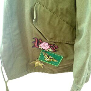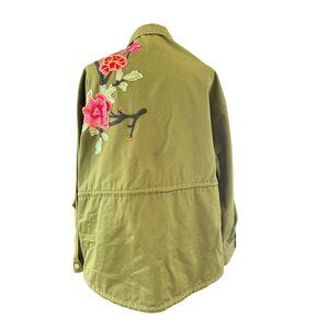 Zara Woman Embroidered Military Jacket with Floral and Bird Patches Size M
