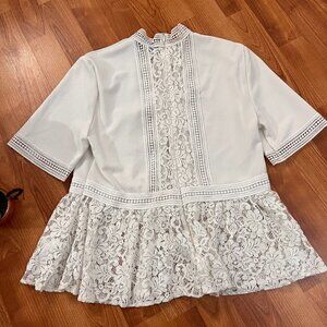 Zara Woman Lace & Crochet Peplum Blouse Ivory White Cropped Shirt Sz M Medium
