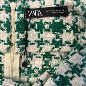 Zara Woman SS22 Ecru/Green Textured A-Line Weave Mini Skirt Size XS Belted X-Mas