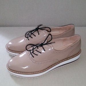 Zara Woman tan patent platform Oxford lace up shoes EUC