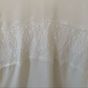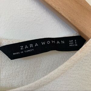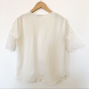 Zara Women Cream Crepe Lace Round Nexk Short Lace Sleeves Blouse