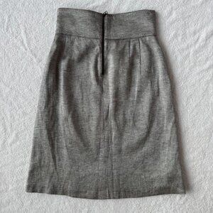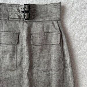 zara women metallic grey / taupe midi pencil skirt with two front pockets and small belts. lined.