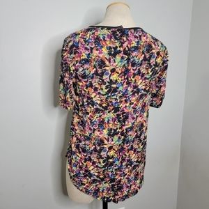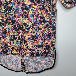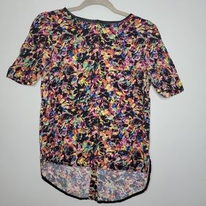 Zara Women Small Short Hi-Low Sleeve Shirt with Bright Pattern & Button Up Back