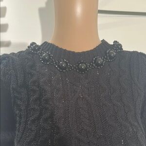 Elegant Zara black cable knit sweater featuring a unique beaded neckline and short sleeves, ideal for layering in any season.
