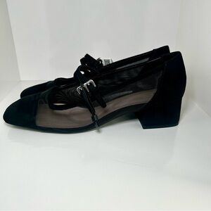 Zara Women's Black Mary Jane Block Mesh Casual Heels, NWT, Size 40