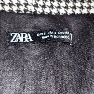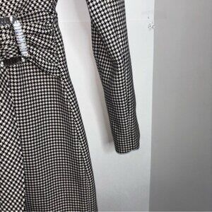 Zara Women's Black White Houndstooth Blazer Dress Small Faux Belt Office Classic