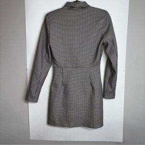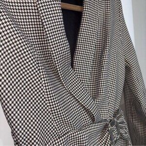 Stylish Zara blazer dress with a houndstooth pattern. Features a faux belted waist for a flattering fit. Perfect for a chic look. Lined.