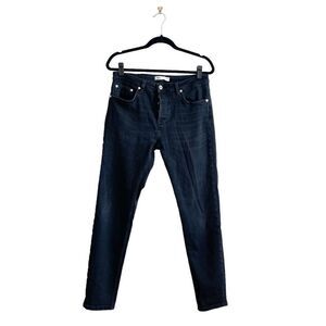 Zara Womens Button-Fly Mid Rise Classic Fit Dark Wash Black Denim Jeans Size 36