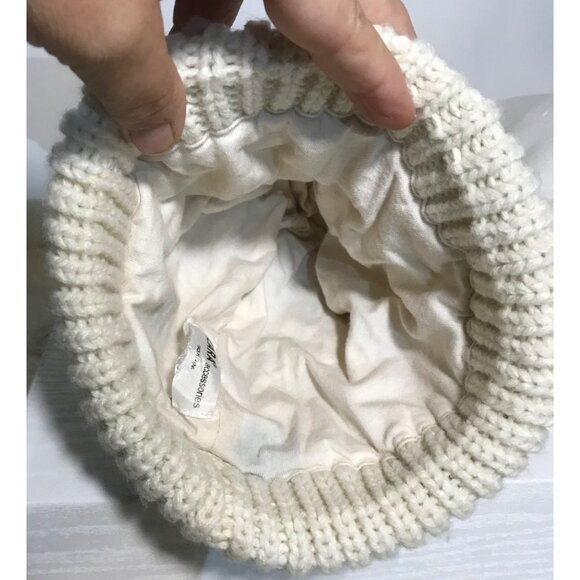 Zara Womens Cream Knit Beanie Hat With Pom Pom