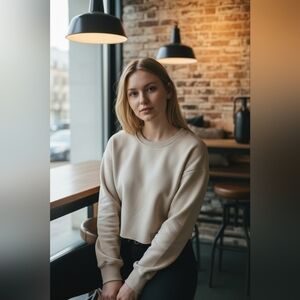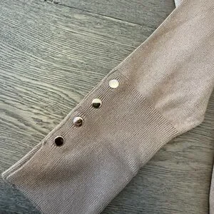Lightweight crewneck sweater with a smooth knit. Neutral camel-tan tone for easy styling. Long sleeves with subtle ribbed cuffs. Minimal, clean silhouette for everyday wear.
