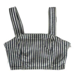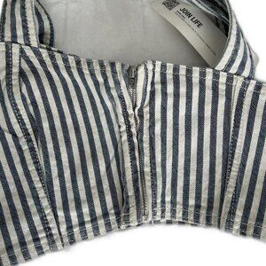 Zara Women's Denim Crop Top Size Small White Blue Striped Side Zip Bustier Tank