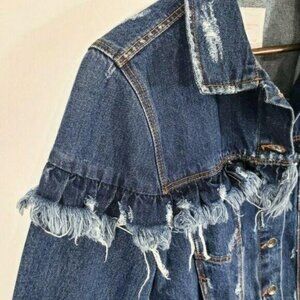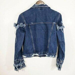 Zara Womens Denim Fringe Jacket Size L Bell Sleeve Medium Wash Unique, Excellent pre-owned condition (please see pics). 100% Cotton, Armpit to armpit = 19 inches
