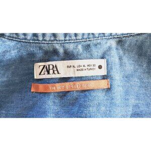 Zara Women's Denim Shirt Dress The 90th Collection Blue Midi Linen Blend Size XL