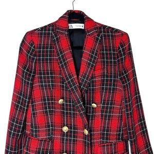 Zara Womens Double Breasted Tweed Plaid Blazer