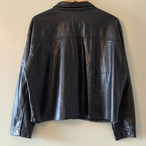Zara Women's Faux Leather Oversize Cropped Button Down Shirt Black Size Large