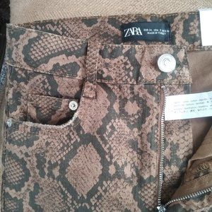 Zara Hi-Rise Skinny Snakeskin Jeans Brown/ Tan