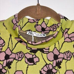 Zara Women’s Large Jacquard Top Tank Fitted High Neck Sleeveless Office Floral