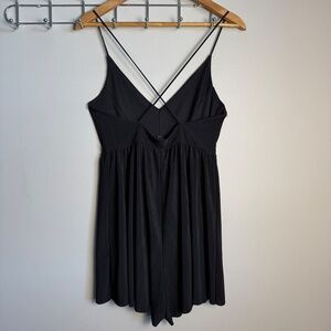 Zara Women's M Babydoll Spaghetti Strap Open Back Romper Black Summer Festival