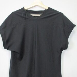 Zara Womens Maxi Dress L Black Short Sleeve Slit Asymetric Minimalist Party 394