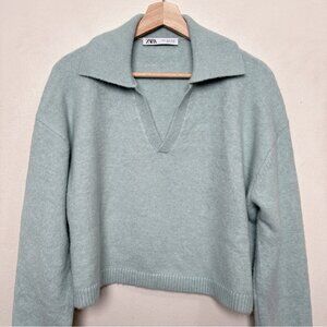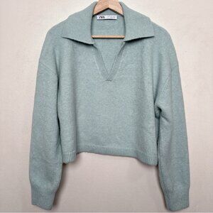 Zara Womens Medium Cropped Polo Collar Knit sweater