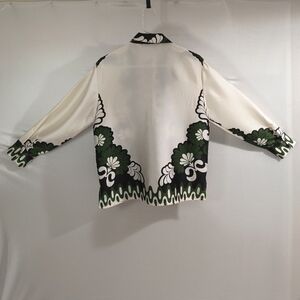 Zara Women's Medium White & Green Floral Button Down Shirt.