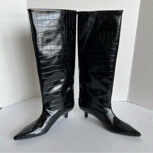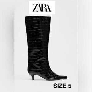 Zara - Women's Mock Croc Kitten Heel Boot - Black. Size: 5 (US). (1848). NWT.