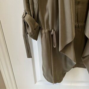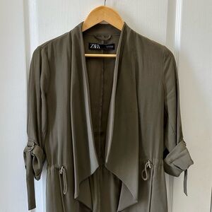 Zara Women's Olive Green Waterfall Open Front Draped Jacket Blazer Size Small