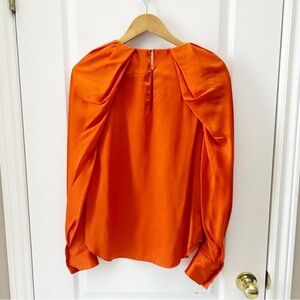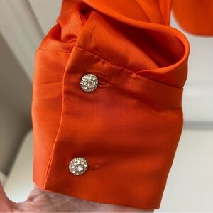 Zara Women's Orange Puff Sleeve Blouse Diamanté Button Satin Top Size Small NWT
