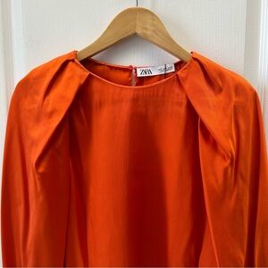 Elevate your style with this vibrant orange satin top from Zara. Perfect for any occasion, this top adds a pop of color to your wardrobe.