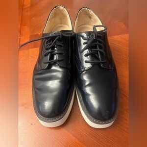 Zara Women’s Black Lace Up Oxford Loafers with white platform sole.