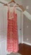 Beautiful and vibrant coral red maxi dress featuring a printed design with fully lined fabric and handmade macramé detailing at the neckline.