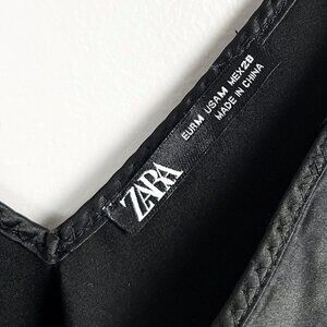 Zara Womens Satin V-Neck Cami Black Medium Date Night
