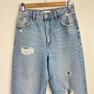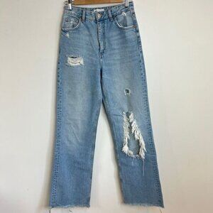 Zara Women's Size 4 Destroyed Distressed Wide Leg Light Wash Blue Jeans Grunge