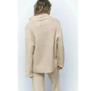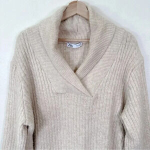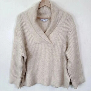 Zara Women's Size Small Cable Ribbed Oversized Beige Sweater