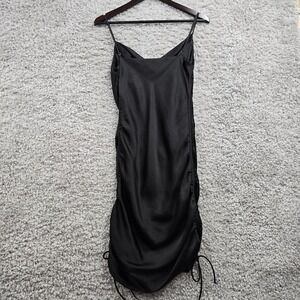 Zara women’s slip dress in black satin with a mini-length silhouette, designed with a draped cowl neckline and adjustable side ties, ideal for date night, evening wear, or a Y2K-inspired look. Includes silky fabric with a fluid drape and adjustable fit details. Size: Medium Condition: New with tags. Features: • Satin fabric • Draped cowl neckline • Mini length silhouette • Adjustable side tie detailing Tags: y2k, date night, slip dress, minimalist, evening wear, sleek Measurements (laid flat): Chest: 16 Length: 31 Measurements are approximate. Additional Notes: Color may vary slightly due to lighting and screen settings. Fit may differ from modern sizing — please compare measurements. Cleaned and stored per platform policies. Smoke-free environment.