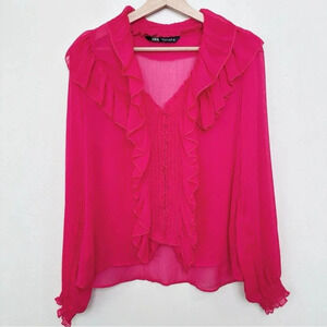 Zara Womens Small Ruffle Pink Sheer Blouse