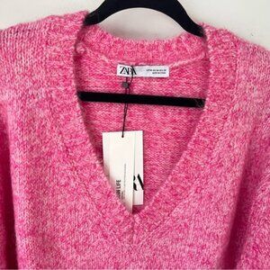 Zara, Women’s V-Neck Knit Sweater - Pink.