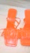 Bold orange sandals with playful fringe. Perfect for a stylish look.