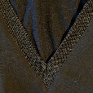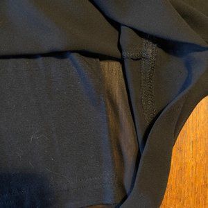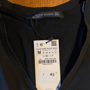 Medium women's Zara sheer black top with Viscose Elastane lining and kimono sleeves. Fine gauge knit-ribbing detail on v-neck. Soft Viscose Elastane lining is attached to a sheer polyester top. Contemporary and elegant styling. Top drapes beautifully on. NWT.