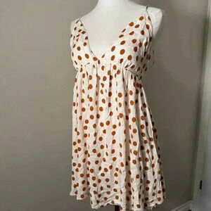 Zara Women's White Brown Fit and Flare Mini Dress Medium Polka Dot Tie Back