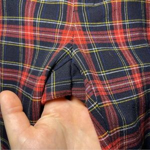 Zara Women's red navy tartan holiday straight leg trouser pants in size US 4