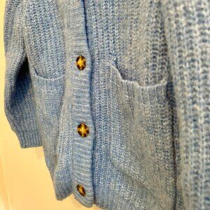 ❄️ This Zara oversized knit cardigan sweater comes in a plush pastel baby-blue with is warm, super soft, with a relaxed drape.