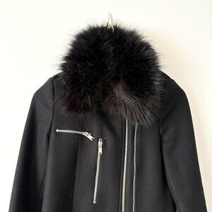 Zara Wool Blend Moto Double Zip Coat Jacket Black Size XS