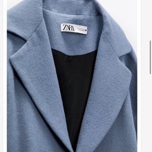 Zara Wool Blue Belted Spring Coat Sz. XL