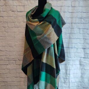 Zara Wool blend Plaid Cape Poncho Blanket Scarf