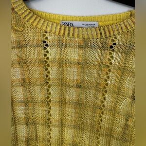 Elevate your style with this vibrant yellow sweater from Zara, featuring a classic crew neck design. The textured knit pattern adds a unique visual appeal, while the semi-transparent fabric offers a modern twist. Perfect for layering, this sweater combines comfort and fashion effortlessly.