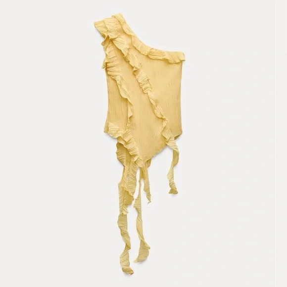 Stylish one-shoulder blouse with ruffle details. Perfect for a chic look.
