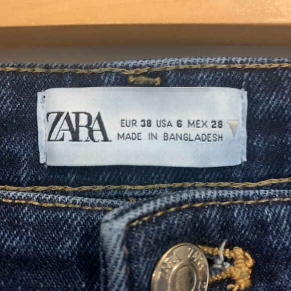 Zara High Waisted Mom Jeans, metal zipper, button closure. Dark wash. Excellent condition.